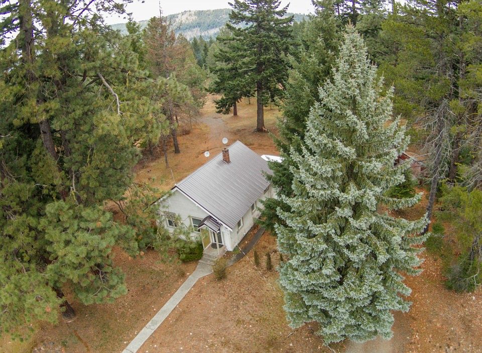 Nestled in the trees, this cottage sits on a prime 3+acre parcel with heavy timber, high producing well & mountain views. Move in ready 2 bedroom home w/new roof, radiant heat, enclosed porch & unfinished basement for added storage. This secluded property is the perfect candidate to build a custom home on with the original house used as a guest cottage. Acreage is flat and useable with some open sections, outbuildings, fruit trees & irrigation rights. Brush cleared, ready to go. Welcome home!
