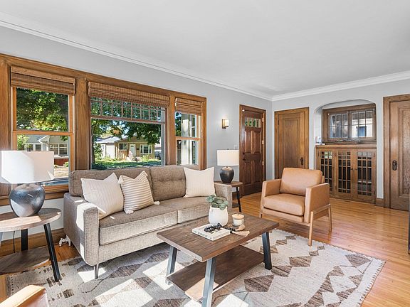 This charming Craftsman home combines classic character with modern updates. The main level features beautiful woodwork, a built-in buffet, formal dining room, two bedrooms, updated kitchen and bath, and hardwood floors throughout. Recent kitchen improvements include a new dishwasher, gas range, refrigerator, and flooring. The upper level offers a bedroom, three-quarter bath with skylight, and bonus room that makes a perfect office/den/craft/exercise room. Major updates include a new deck, driveway, spacious 2 car plus garage, water heater, boiler, and modern thermostats. New storm windows and custom window treatments throughout main floor, new custom window upstairs, and the roof is newer, too! The sewer line was partially replaced and a liner added in 2022 with a 50-year warranty. The beautifully landscaped yard features raspberry bushes, and the home is in the highly desirable Kingfield neighborhood near Lake Harriet, with easy access to local shops and restaurants. This home blends modern convenience with timeless appeal.