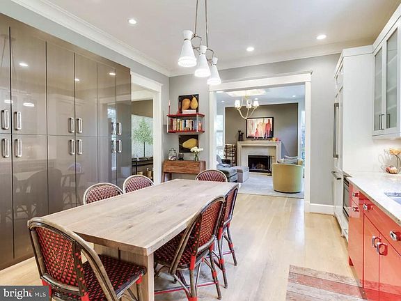 Located on a cul-de-sac street in the desirable Palisades neighborhood, this custom designed home, by Chryssa Wolfe, was built in 2010 and features the utmost in modern convenience. Distinctive touches can be found throughout including rich architectural detailing, high ceilings, custom built-ins, recessed lighting, and thick crown molding. The main level offers bright and open spaces ideal for entertaining and everyday living, including a formal dining room with elegant sliding doors that open up to a bar, a sun-lit office/study, and a tasteful living room with French doors that open onto the outdoor patio. The eat-in, gourmet kitchen boasts Thermador stainless steel appliances, a built-in refrigerator, six-burner gas range with hood, granite counters and exquisite cabinetry, while being open to a cozy family room with fireplace. Upstairs, find the bright master bedroom with a gorgeous skylight, his and her walk-in closets, and a stunning en-suite bath. The upper level also features a conveniently located laundry room and three additional bedrooms with ceiling fans, large closets, and ample natural light, which all share a luxurious hall bath. Downstairs, the walkout lower level includes a recreation room, storage/utility room with two cedar closets, and a fifth bedroom and full bath, ideal for an au pair or in law suite. Outside, the home offers a spacious patio and a fenced in private backyard including a storage shed with a "green roof". Situated just steps away from Hardy Park, shops, and restaurants, this home has great commutability into the city and is just blocks from darling Georgetown and nightlife.