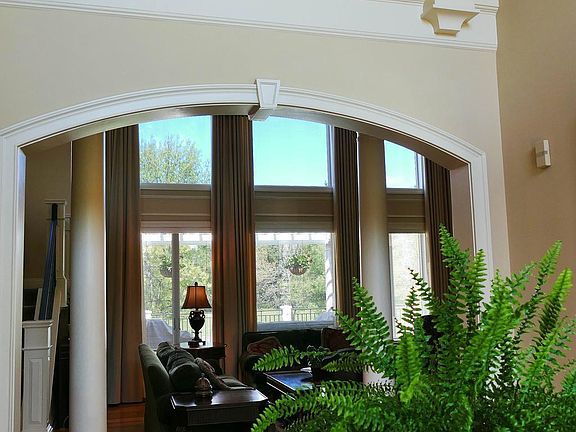 - Interior Features: Upgraded Countertops, Floor Plan - Open, Master Bath(s), Crown Moldings, Recessed Lighting, Chair Railings, CeilngFan(s), Stain/Lead Glass, Bar