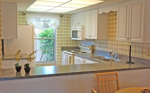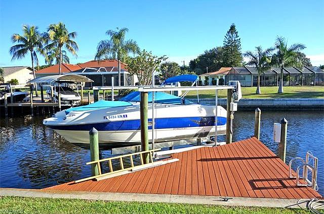 Gulf Access Condo with a brand NEW KITCHEN. End-Unit Condo Turn-Key, First Floor - offers serene canal views on a wide intersecting canal over viewing your dock and boatlift. Fish for Tarpon from your own dock!! Features 2 bedrooms, 2 bath, laundry room, great room living/dining area, large screened lanai overlooking wide canal water views. The condo has tile throughout except bedrooms which has carpet. The master bedroom has sliders to the lanai and en-suite bathroom with a tiled walk in shower. Guest bath with tub. This well maintained property features an easy access community pool, covered parking and extra storage. Walking distance to Downtown Shops & Restaurants. Together with the Bimini basin project - this house will have 5 min to all attraction Cape Coral has to offer. 5 min to the closest beach - Cape Coral Yacht Club Beach with Fishing Pier and Tiki-Restaurant. Enjoy a nice dinner with live music while the sun sets over the Caloosahatchee river. 25 min to Southwest International Airport.