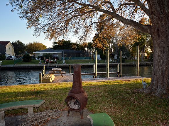 It''s all about location! Second house from entrance to Champagne Bayou, this spacious Canal Home on Snead Island has beautiful views. Great outdoor entertaining area in the back yard with a patio. A spacious screen room lets you enjoy the views and Florida Bird Life. A wrap around dock is situated along 100'' of concrete seawall. The main floor is 3 bed/2 baths and all Terazzo Flooring which is just been ground and polished. Brand New Stainless Appliances installed in kitchen. Formal Dining Area plus an Eat-In kitchen. Above the garage with a separate entrance is a 572 sq ft addition. This could be a guest suite, home office or even a game room. Views from this room are amazing of Champagne Bayou. The downstairs has impact Hurricane Windows. Plenty of room to add a pool in the back yard. No Deed Restrictions and No HOA make this location even more attractive!