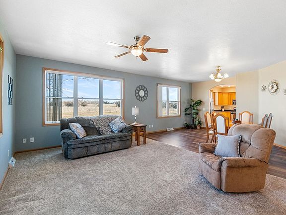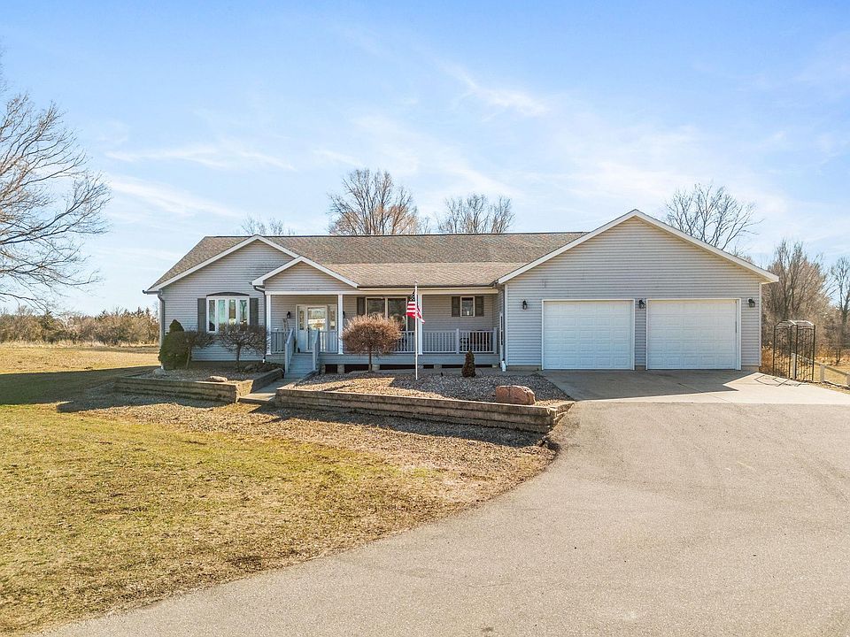 The acreage you've been waiting for! Situated in a perfect Cedar Falls location with Janesville Schools, this country-side-surrounded property provides 1.64 acres of land, a 2007-built sprawling ranch home, and a 42x52 steel outbuilding with plenty of room for your toys and hobbies! The main floor of this great home offers nearly 2600 square feet of finished space that has been completely refreshed with new carpet and LVT flooring throughout. As you come through the front door, you'll immediately appreciate the 9-foot ceilings and window coverage that make each room feel bright and spacious. Just off the entry, you'll find the first of two main-floor living spaces, leading you to a nice formal dining area. Through the archway off the dining room is an updated, functional kitchen with ample counter and cabinet space, stainless steel appliances, and an island with breakfast bar seating. The heart of the home opens up to the huge main living room with back deck access and a gas fireplace, making it the place to be when gathering with family and friends. The connectivity throughout the main-floor living spaces truly makes entertaining easy! On the other wing of the main floor, you'll find two good-sized bedrooms and a full bathroom. Also on this wing is the beautiful ensuite master bedroom with a walk-in closet, jetted tub, tile shower, and double vanity. Finishing off the main floor is a convenient laundry area and a connected 3/4 bathroom. The lower level of this spacious ranch is wide open and full of potential, with walls, flooring, and an egress window already in place. Add your finishing touch to create the basement of your dreams. If you thought the interior of the home was great, the exterior will make you fall in love! Enjoy the 1.64 acres of open space, the huge 2200-square-foot steel outbuilding with pristine concrete floors, the oversized 784-square-foot two-stall garage with basement access, and nice landscaping. Or watch the sun rise and set from the composite front porch and back deck, with beautiful views in all directions. Whatever it is, this property is set up perfectly to enjoy all that life in the country has to offer. Acreage opportunities like this don't hit the market often! Don't let this one pass you by; schedule your private showing today!