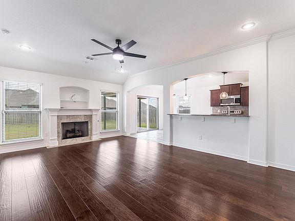 Hardwood flooringCozy gas log fireplaceFully fenced backyardGranite countertopsStainless steel appliances