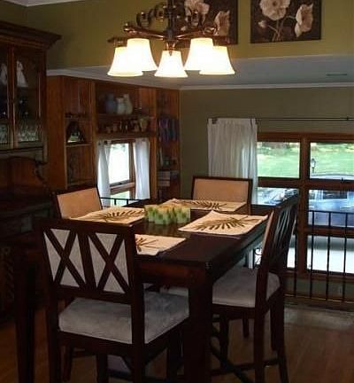 Charming home with cottage feeling! Taste fully decorated. Lovely wood floors. Open spacious living room/dining room combination with brick woodburning fireplace. Great family home offers 4 bedrooms, 2 baths, and large lower level walkout family room. Lots of built-in storage. New roof and gutters in 2008. New dishwasher, disposal. Nice large lot with mature trees, fenced yard, brick patio. Great buy in area of much higher priced properties!