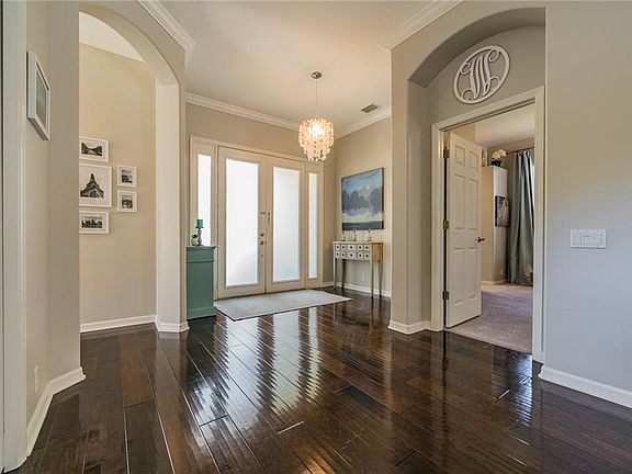 - Interior Features: Ceiling Fans(s), High Ceiling(s), Living Room/Dining Room Combo, Master Bedroom Downstairs, Split Bedroom, Crown Molding, Walk-In Closet(s), Window Treatments, Open Floorplan, Solid Wood Cabinets, Kitchen/Family Room Combo, Stone Counters