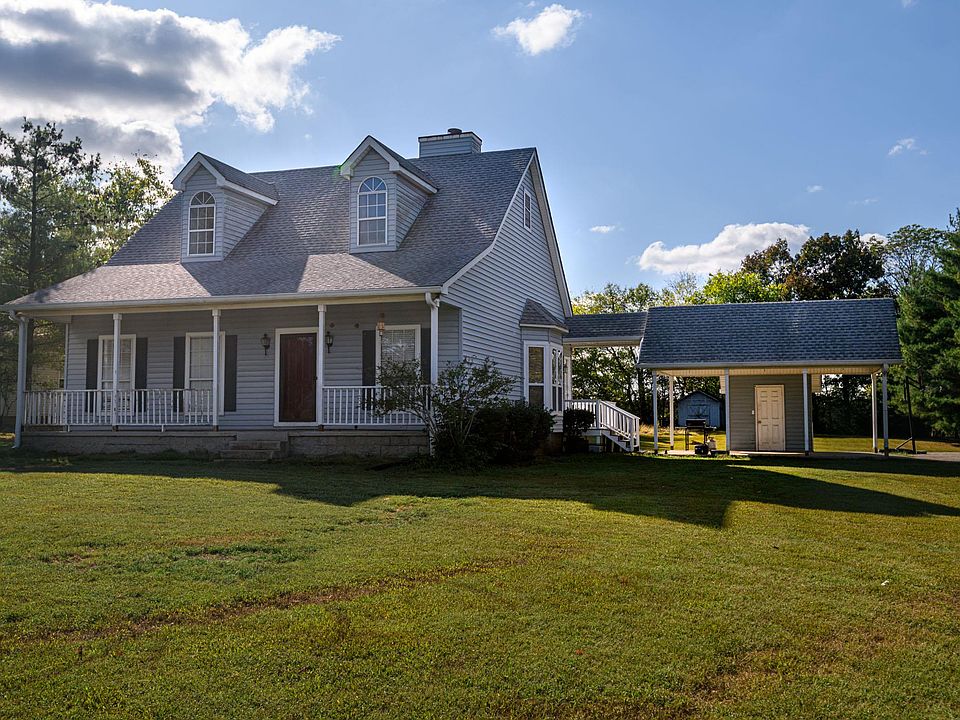 Charming Cape Cod style home on 1.08 level acres. Living room w/ hardwood floors& vaulted ceilings, spacious kitchen area w/breakfast bar, master suite w/trey ceilings & remodeled master bath, upstairs bonus room w/1/2 bath, covered front porch, large back deck, attached storage building & carport, concrete driveway, minutes from Lebanon, Murfreesboro or I-840.