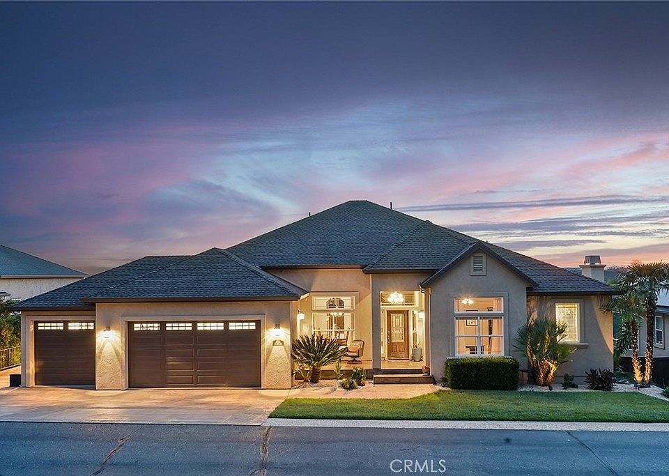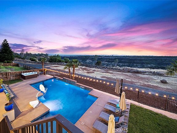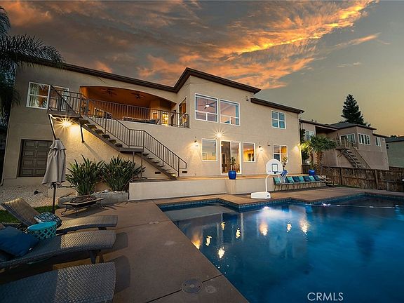 VIEW, POOL, HOT TUB and the most amazing sunsets you could imagine with over 4000 sq feet of living! This home was truly built as an entertainer's home featuring 4 bedrooms, 5 baths, game room, office, living room, family room, dining room plus a bonus room with so much more. Main level features nearly 3000 sq feet of living with a view from nearly every room with all bedrooms on the main level. Kitchen features granite counters, pantry, stainless appliances and breakfast bar. Master suite is oversized with a sitting area, patio access, large walk-in closet and a master bath with dual shower, jetted soaking tub and double vanity. Split bedroom floor plan provides 3 additional bedrooms, 2 with jack/jill style bathroom with private shower area and additional bedroom with private bath. Dining room, living room and family room all access the large covered upper deck that takes full advantage of the canyon and sunset views. Downstairs you will find over 1000 sq feet of permitted living area and could be used as a complete guest quarter although currently set up as a game room with a gas fireplace plus an additional full kitchen, bathroom and bonus room. Storage is never an issue as the home features an attached 3 car garage on main level plus a downstairs storage area with garage door perfect for quads and all the pool furniture. Oversized 38-foot saltwater pool, with waterfalls and Caribbean step complete this home by making it the ultimate outdoor oasis adorned with 18 mature palm trees and avocado trees. Fenced backyard, fully landscaped front and back yards and a designated garden area make for simple living and tons of enjoyment. Schedule your private showing today! Recent upgrades include pool refurbished (2022), exterior paint (2019), new attic and under insulation (2019), new flooring (2019/2021), new decking (2021). Greenbelt area behind home