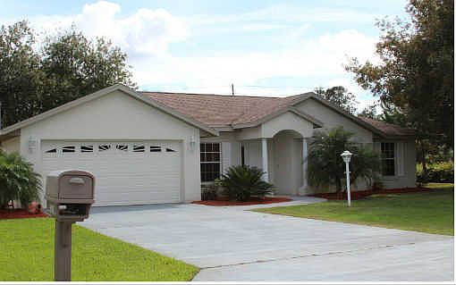 I HAVE CURB APPEAL!! Beautifully maintained 3 bedroom, 2 bath home TASTEFULLY FURNISHED and move in ready. Built in 2002 with quality in mind. The spacious living/dining area has an attractive open floor plan with 18 x 18 neutral tile, cathedral ceilings and upgraded ceiling fans & light fixtures. The kitchen has plenty of light colored cabinetry, a pantry, double sinks, recessed lighting and tile flooring. The adjacent laundry room can be used for additional storage. Each bedroom is carpeted with a full size closet.The large master bedroom can fit a king size bedroom set with room to spare, has a walk in closet and equally large master bath. The master bath has attractive wood cabinets, cultured marble counters and a large shower. The immaculate two car garage has built in storage and work bench. Enjoy the Florida weather on the 11 x 16 tiled, screened and covered lanai. Security system and well irrigation in place.