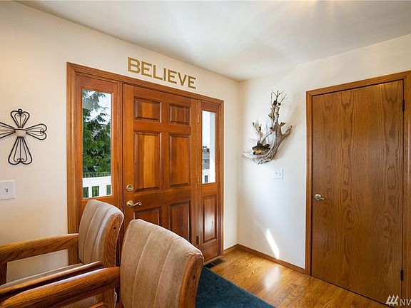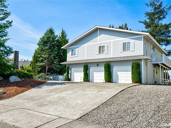 Enjoy spectacular Northwesterly views of the Channel, Straits & San Juan Islands while entertaining guests on your spacious wrap-around deck. Vaulted ceilings, oak flooring, french doors, custom oak kitchen cabinets, walk-in pantry, gas range, stainless appliances & freestanding gas fireplace are just some of the interior features this meticulously maintained home has to offer. The manicured backyard is fully fenced offering quiet privacy. A three car garage & plenty of room for your boat & RV!