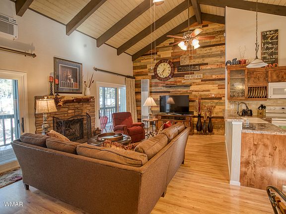 Outstanding condo in Pinetop Lakes Sports Village! Two bedrooms and two bathrooms in 1220 sf. What a very nice remodel! Vaulted ceilings make this condo feel huge while featuring all new windows and sliding doors, a natural gas fireplace and furnace. (One of the few units to have natural gas). Decks on front and back. Unit comes completely furnished. Tons of storage. HOA is $1920 per year. One assigned parking spot with lots of guest parking available. Come on up and enjoy the mountain weather. HOA covers trash and water. Condo is just a few mintues from restaurants, shopping, recreation.