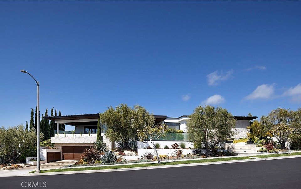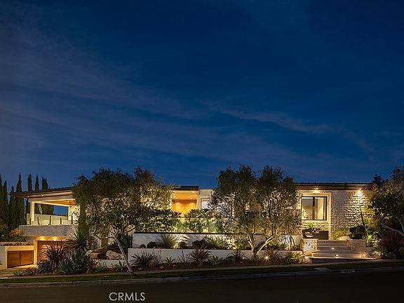 Located in the coveted community of Cameo Shores in Corona del Mar, this extraordinary coastal sanctuary unfolds across an elevated 12,000-square-foot parcel, offering nearly 6,000 square feet of effortless single-level living complemented by an additional 900 square feet of lower-level retreat. The home can delivered fully furnished with curated designer pieces outside of Escrow, a masterclass in understated luxury and seamless indoor-outdoor living. Beyond the private gated entry, a tranquil arrival sets the tone, revealing a sun-washed interior defined by soaring ceilings, walls of glass, and a warm, natural palette of refined textures. South-facing living and dining spaces open gracefully to ocean-view terraces, while the expansive outdoor domain is anchored by a resort-style pool, spa, fire feature, and intimate seating vignettes, inviting quiet moments and meaningful gatherings alike. At the heart of the home, a sculptural culinary kitchen with a striking fifteen-foot island serves as both gathering place and design centerpiece, harmonizing the surrounding living, dining, and outdoor terrace. A discreet secondary kitchen and bar offer effortless service to the central courtyard, while a thoughtfully placed media lounge with bi-fold doors dissolves the boundary between interior and exterior. Interiors are layered with intention: solid wood flooring grounds natural stone surfaces, custom cabinetry and wall coverings add depth, and tailored lighting complements automated shades and drapery. Full Control4 automation orchestrates lighting, climate, audio-visual, security, and window treatments, delivering comfort with quiet precision. The primary suite occupies its own private wing, introduced by an executive office and culminating in a serene bedroom with fireplace, sitting area, and direct access to the pool and spa. A spa-inspired bath features dual vanities, bespoke cabinetry, stone-and-glass shower, and soaking tub, while an expansive dressing room with center island and enclosed wardrobes completes the retreat. Four additional bedroom suites and two powder rooms provide gracious accommodations, while the lower level reveals a four-car garage, wine cellar, full bath, and state-of-the-art cinema with entertaining bar. Crowning the residence, a rare rooftop deck offers sweeping panoramic ocean vistas, a peaceful perch above it all. Residents of Cameo Shores enjoy gated access to three private beaches and Crystal Cove State Beach.