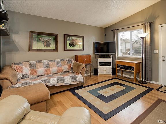 Unique size-friendly starter home located in award winning Cherry Creek School District with a full-size yard to enjoy pets and entertaining with friends. Enhanced by two convenient Bedrooms along with your Family Room open to the bright Kitchen including breakfast bar. Accented by wood laminate and tile floors through-out. New dishwaher installed last week. Newer furnace about 1 year old. Enjoy a low maintenance front yard with no HOA. Garage has built-in shelves. Convenient shopping, parks near-by, Quincy Reservoir, easy E-470 access and more!