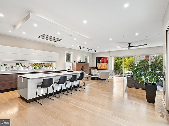 Sited on a beautifully landscaped parcel in DC’s coveted Palisades neighborhood, an exquisitely executed modern masterpiece awaits. Built in 2020, the property presents a sprawling open concept floor plan perfectly appointed for luxurious large-scale living across 4 levels and 7,600 total square feet. This 6 Bedroom, 6.5 Bathroom Contemporary-style residence boasts every amenity, high-end finish, and top-of-the-line fixture imaginable, from an elevator servicing all levels to an EV Charging Station in the 2-Car Attached Garage. Outside, a serene escape seamlessly compliments the interiors, with a pergola covered Courtyard adjacent to the Gourmet Kitchen. On the Top Level, a breathtaking Rooftop Terrace debuts jaw-dropping, south-facing, city and monument views, along with a fully outfitted wet bar just inside. <br> <br> The charming stone pathway, lined with greenery, leads guests to the covered porch, creating the ideal intimate welcome. The Entry Foyer unveils a gorgeous open layout of the Living and Dining Rooms. The stunning Gourmet Chef’s Kitchen and Family Room follow closely behind with an equally captivating open layout and sleek design. Showcasing a full center island with Dekton countertops, high-end Miele appliances, two dishwashers, and custom Scavolini cabinetry. The Family Room offers ample seating space for large and intimate gatherings alike, in addition to a fireplace and floating shelves. A breathtaking Courtyard, paired with a Pergola, rests between the open layouts. The Main Level is completed by a private Study and a Powder Room. <br> <br> Ascending to the 2nd Level, a spacious, light-filled Recreation Room awaits, flanking three Bedroom Suites. The first of two Primary Bedroom Suites showcases large windows, and a spa-like Full Bath, complete with an air jet tub, dual vanity, modern light fixtures, and walk-in steam shower. Additionally, the Suite features a generous Walk-In Closet with built-in shelves. The two additional Bedrooms each include an en suite Bathroom and Closet. The 2nd Level is complete with a Laundry Room. The 3rd Level reveals an additional Primary Bedroom Suite, boasting sizable windows, terrace access, and a large Walk-In Closet with built-in shelves. The spa-like Bathroom creates the ideal stress-free sanctuary to clear one’s mind, complete with a chic dual vanity, floating sinks, and walk-in shower, leading effortlessly to the soaking tub. The 3rd Floor is completed with a modern Wet Bar, leading to the breathtaking Rooftop. Enjoy a south-facing view of D.C.’s National Monument amidst leafy greenery in this quiet escape from the city. <br> <br> Descending to the Lower Level, the In-Law Suite or possible rental unit awaits, with an independent access. Within lies the open layout of the Living Room, and fully equipped Eat-In Kitchen. 2 additional Bedrooms offer en suite Bathrooms, Closets, and sliding doors leading to the Stone Rear Terrace, Deck and manicured lawn. A Utility Room, Mudroom, Storage Room and spacious Two-Car Garage with EV Charging complete this level.