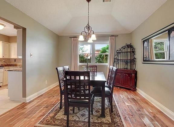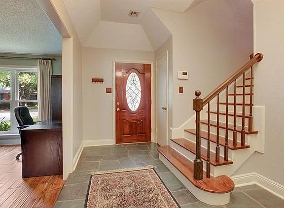 Open floorplan with large rooms throughout. Slate Foyer entrance/ formal living/separate dining and a lg den that opens to a screened in patio. Den with built in book cases and a wood burning fireplace. Kitchen offers white cabinets and granite countertops. Wood floors in the living area and carpet upstairs. Newer insulated windows and a young roof. 4 bedrooms up with 2 full baths & large walk in closets. Flood only $721.00