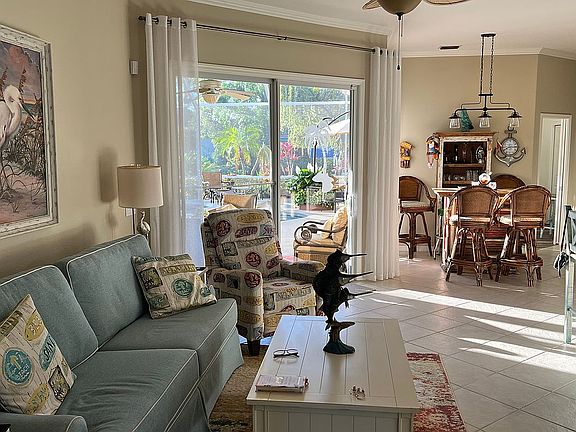 THIS WELL-MAINTAINED HOME IS SITUATED ON A SALTWATER CANAL AND PROVIDES A 8 X 35 FOOT DOCK, A FISH-CLEANING STATION AND A COVERED 10K BOAT LIFT WITH A GEM REMOTE CONTROL. BUILT IN 2003 IT FEATURES THE POPULAR WEATHERLY 2,364 SQUARE FOOT FLOOR PLAN INCLUDING 3 BEDROOMS, 2 LIVING AREAS, DEN/OFFICE, DINING ROOM, KITCHEN AND 2 ½ BATHS. CONSTRUCTED WITH ENERGY EFFICIENTY IN MIND IT HAS PGT HURRICAN RATED WINDOWS, DOORS AND INSULATED HURRICAN GARAGE DOOR, EXTRA BLOWN IN INSULATION THROUGH OUT EVEN IN THE GARAGE ATTIC,RADIANT BARRIER WITH TECH SHEILD. THE 10 FOOT CEILINGS ALLOWED 33 LENIAR FEET OF 150# STORAGE SHELVES. A HIGH EFFICIENTY 15 SEER RATING A/C HEAT PUMP. THE MANY UPGRADES TO THE EXTERIOR INCLUDE LUSH TROPICAL LANDSCAPING, PAINTING, ROOF, FULL GUTTERS, TEXTURED DRIVEWAY PAVERS, TERRAZO PAVER WALKWAY IN BACK, CONCRETE LANDSCAPE CURBING AND NEW GAS HOT WATER HEATER A NEW POOL PUMP AND FILTER. THE POOL AND HOT TUB CAN BE REMOTELY CONTROLED FROM LANIAI, FIVE FILTERED COLD AIR RETURNS WERE ADD ALONG WITH A NEW BLOWER MOTOR MAKING THIS HOME VERTUALLY DUST FREE. INTERIOR IMPROVMENTS INCLUDE PROFESSIONAL REMODELING OF MASTER CLOSETS, AM/FM/BT RECIEVER AND CD PLAYER TO POWER THE BOSE SPEAKER SYSTEM, ADDITIONAL WALL STORAGE CABINETS, NEW STAINLESS STEEL KITCHEN APPLIANCES, PLANTATION SHUTTERS, PULLOUTS IN KITCHEN CABINENTS WITH COMPLETE REDESIGN OF CABINETS DOORS, DRAWERS AND HARDWARE, NEW LIGHTING IN KITCHEN AREA, QUARTZITE COUNTER TOPS WITH STAINLESS STEEL FARM SINK AND TOUCH FAUCET. CROWN MOLDING AND PAINTING IN LIVING AREA, FLOORS RECOVERED WITH LUXURY WATERPROOF VINYL. REMODELED MASTER SHOWER, TUB, GRANITE COUNTER TOPS, NEW SINKS AND FACUETS IN BOTH FULL BATHS, ALL TOILETS REPACED WITH CHAIR HEIGHT AND SLOW CLOSE LIDS.