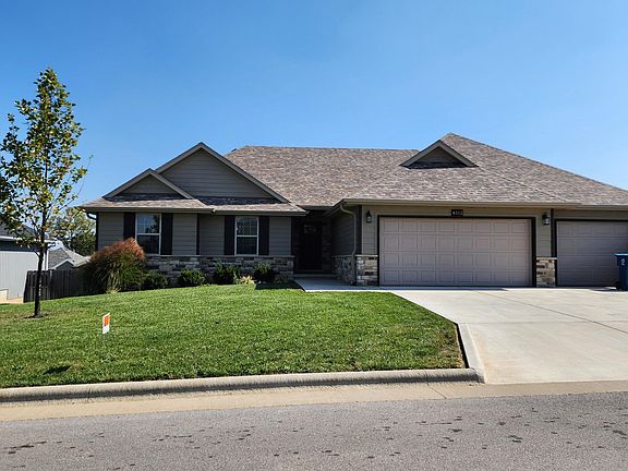 4 bedrooms 2 bath 3 car garage. Large master bath and walk-in closet. Laundry room. Granite counter tops. Large walk-in pantry. White cabinets throughout. Wood floor in livingroom, kitchen, and eating area. Tile in both bathrooms and laundry. Carpet in bedrooms. Gas fire place in living room. Freshly painted interior. New carpet in bedrooms. Large fenced back yard with sprinkler system. Large covered deck with additional lower composite deck. In Olde World Estates in Ozark Missouri 65721 off of 22nd street. Five minutes to 65 hwy and several restaurants on CC hwy. Ozark West Elementary school. No smoking. Will allow one dog. Renter is responsible for all utilities (gas, water, electric, trash service, internet and cable) including watering lawn. Owner will provide lawn care. Renter must pick up pet droppings. No smoking allowed. One medium dog allowed no cats. First month rent and pet deposit is due at signing. Parking is private. Can have roommates, but not to exceed 5 occupants. Will need to pay the term of the lease if it is broken.
