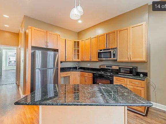 Nicely updated 2 bedroom apartment w/ den for rent on 1st floor in large Chicago greystone building. Apartment features large living room w/ separate dining room, 2 large bedrooms with/ closets plus additional den. This bright and spacious apartment has dark laminate hardwood floors, stainless steel appliances, updated maple cabinets and granite countertops. The building features outdoor deck , camera security system, and shared common area yard. Tenants pay own electric and gas. Avail Dec 1, 2025.