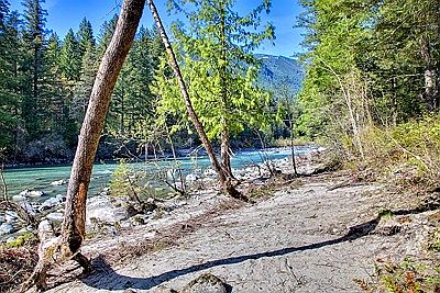 Stunning riverfront home on over an acre plus guest cottage. Gorgeous riverfront offers a sandy beach yet no flood insurance required! Main home is immaculate: 3BR's, 2 Baths, master w/ WIC & master bath, spacious kitchen, huge bonus, living w/firepl, fml dining, metal roof, huge deck, etc. Refurbished historic cabin features loft BR, bath, living w/wood stove, kitchen, patio, etc - guests, MIL or rental? Mtn views & 150' of gorgeous riverfront. Breathtaking yet convenient location. Hm Warranty