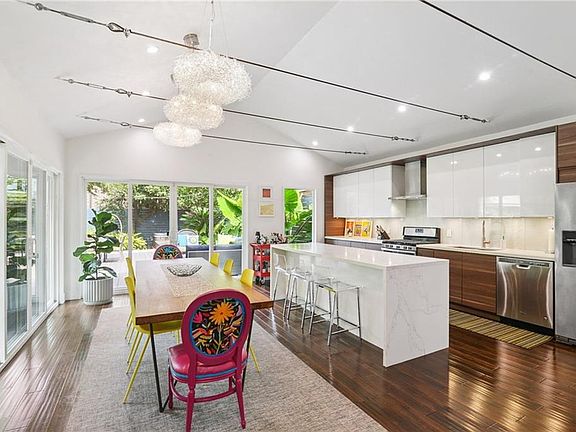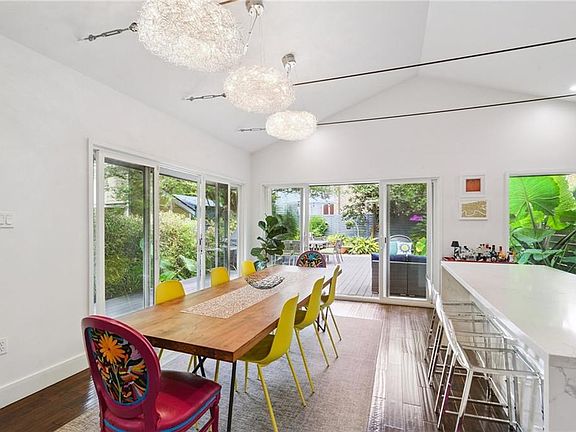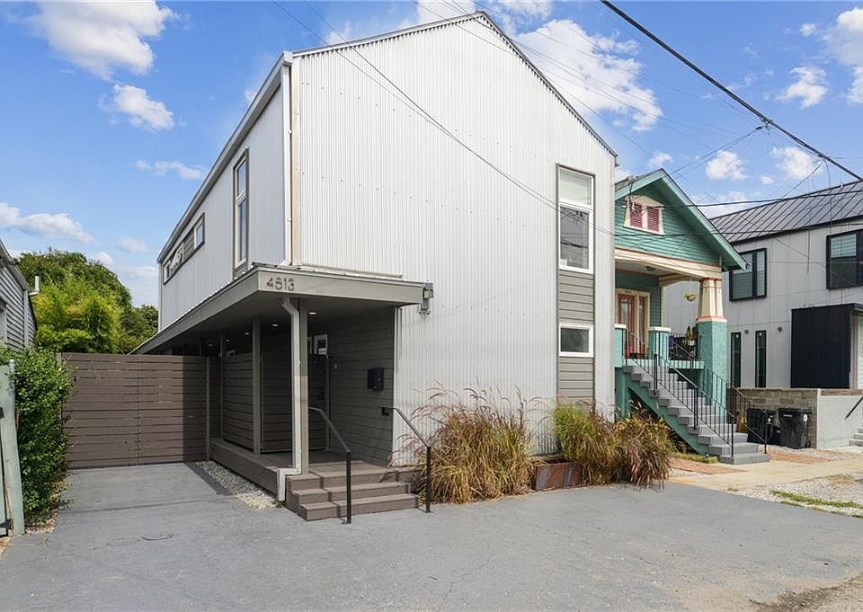 Designed by two architects as their home, this unique property with modern design in an urban oasis! This gated, contemporary residence sits on an oversized key lot in a prime Uptown location just off Magazine and Napoleon. Pass through the gates to the driveway and side deck, then enter this light-filled home with clean architectural lines, vaulted ceilings, and a flexible floor plan.