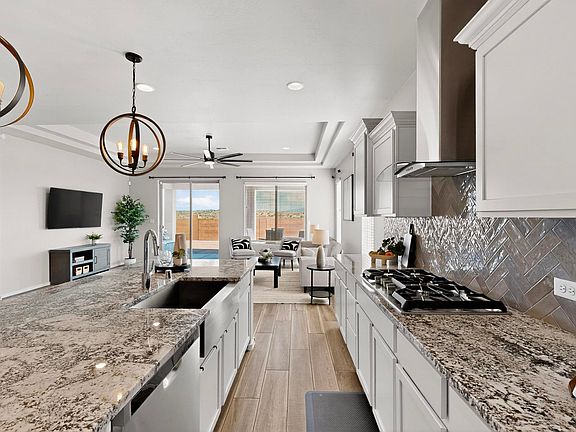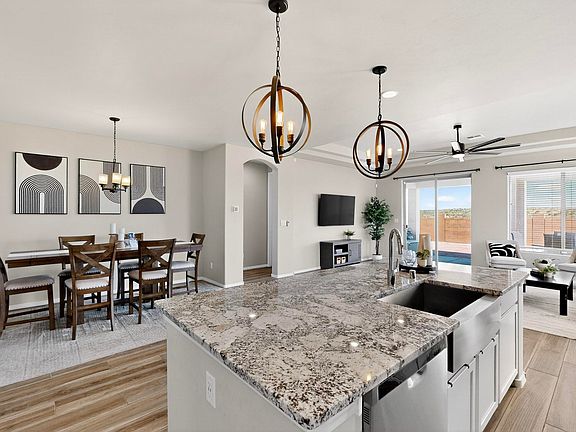 Like New! The seller is offering 1% of the purchase price toward a buyer's interest rate buydown. Welcome to your Rio Rancho oasis! Nestled in the desirable Mountain Hawk subdivision, this stunning 4-bedroom, 2-bath home, built in 2022, offers the perfect blend of modern style and comfort. The open floor plan and high ceilings create a bright and airy feel. The chef's kitchen features elegant marble countertops and a spacious island. The tranquil primary suite has a private en-suite bathroom with a large walk-in closet. Three additional bedrooms provide plenty of space for family, friends, or an office. Fully landscaped, low maintenance front and back yards, and a covered patio provide an enjoyable outdoor space. This property is in excellent condition. Don't miss this exceptional home!