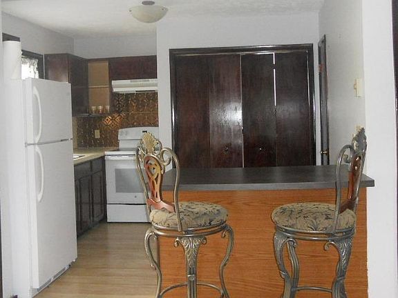 Contemporary Style home features: 3 bedrooms, 1.5 bathrooms, living room/dining room combo. Brick faced wood burning FP & 1 car garage!! AS IS CONDITION!
