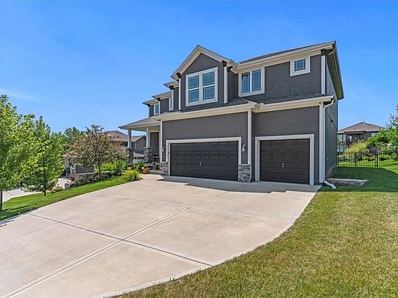 Welcome home to this lightly lived in, six years young 2-story home, tucked away on a quiet cul-de-sac in the peaceful Western Shawnee Riverview Community. You will be greeted with soaring ceilings, tons of natural light and spacious rooms. The main floor includes the great room, a bedroom and full bathroom, the cheerful white kitchen and huge dining area. The walls of windows will give you perfect viewing of the fenced backyard - where you will appreciate the attention given to the landscaping, vinyl/composite raised garden boxes and the easy to use, app controlled Hunter Hydrawise irrigation system. >> Head up to the second floor to find three more large, secondary bedrooms, two full bathrooms, laundry room and the primary suite. You will love the size and beautiful finishes of the primary bedroom and bathroom and don't miss the walk-in closet with custom shoe shelves and motion sensor lighting. >> There is more!! The basement finish has been started - including framing, electrical and plumbing rough in for a full bathroom and wet bar; all approvals and permits granted, making it easy for someone to finish up. So much care and attention to detail has been given to this home. Come see for yourself!