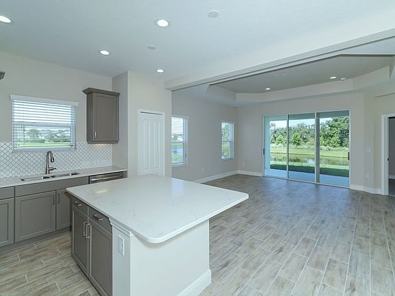 Airy and open, the Crystal Sand paired villa home is comfortable, smart and completely move-in ready.. This all-new home features an open great room and kitchen area, which leads to a back lanai from sliding glass doors. The master suite includes two closets, one a walk-in, and master bath with walk-in shower, two sink vanities and a private water closet. This wonderfully constructed, all-new home with makes a perfect retreat for a small family, singles or as a second home. Learn more about Silverleaf in Parrish today. Call to schedule your visit to this wonderful Neal community!
