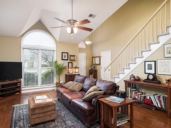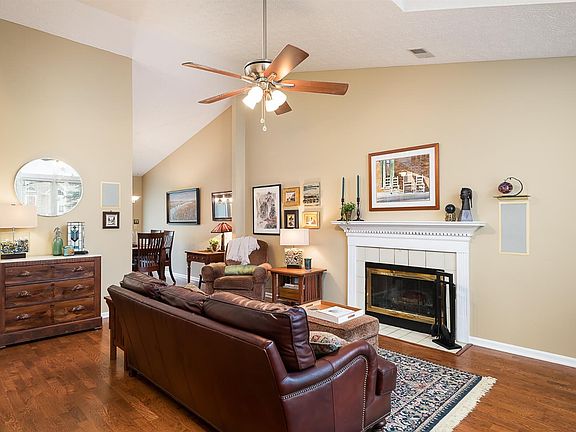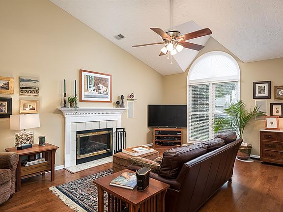 Home in fantastic condition, One and a half story offers master bedroom on first floor, great room with fireplace, beautiful hardwood flooring, granite counter tops in kitchen, window sill, half bath and master bath. 3 year old Stainless steel appliances all stay. Skylight in kitchen for more natural light. Whole house painted inside 2017. Surround sound on first floor and back patio. Second floor offers 2 more bedrooms, (One used for owners office). Other updates include some tile flooring, sinks in kitchen, half bath and master bath. Private, covered patio in back yard.