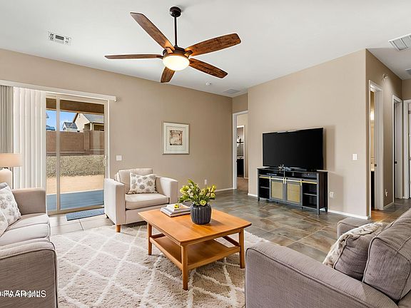 Experience the ultimate in single level living in this pristine move in ready home on a desirable corner lot. New exterior paint in 2024. The spacious open floor plan is filled with natural light creating a warm and inviting atmosphere. This home features a split floorplan with 3 bedrooms, 2 bathrooms and an oversized 2 car garage. The modern style efficient kitchen features newer appliances and plenty of counter space to create your fabulous meals. Step outside to the oversized, fully fenced backyard with a covered patio and enjoy all the community amenities, nearby hiking and biking trails. There is even a friendly grass dog park nearby for your furry friends. This community has RV storage as well.