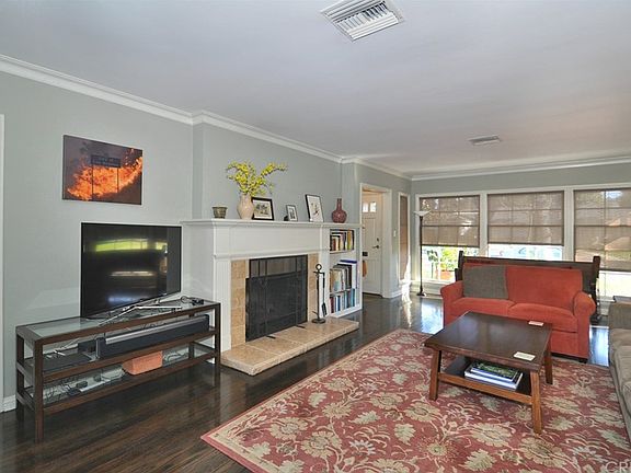 Prime Sherman Oaks location! Traditional single-story 2 bed, 1 bath home tucked away on tree-lined street. Enjoy the charming curb appeal with winding brick walkway edged by roses and flowering hedges leading to the crisp red front door. Formal entry leads to spacious living room featuring large picture windows and dual pane back slider, providing ample natural light, crown moldings, dark wood floors and a striking fireplace trimmed in stone/tile. Dining room also features large window, wood and crown moldings and opens into kitchen. Bright and airy, eat-in kitchen remodeled with crisp white cabinets, stainless double oven, convenient pantry/laundry area and access to back courtyard. Two sizable bedrooms with dark wood floors share a full hall bath. Smooth ceiling throughout. Enclosed courtyard provides private space to enjoy outdoor living and access to guesthouse and oversized 2 car garage + driveway area. Long drive on side of house leads to gated, extensive parking area with room for multiple cars or RV, 2 car garage, and guesthouse entrance. Studio + 1 bath guest house (approx 294 square feet, may not have permit) features private entrance, exposed, wood beam, cathedral ceiling and access to back courtyard. Insulation added to attic and updated electrical wiring and panels throughout home. Well-situated near North Valley Riverwalk, shops and restaurants on Ventura Blvd. and easy access to the 101 freeway.