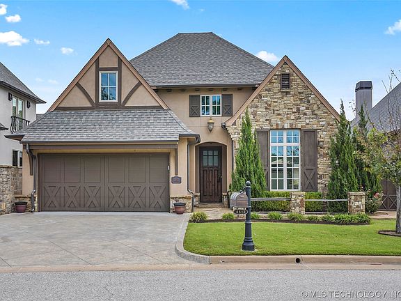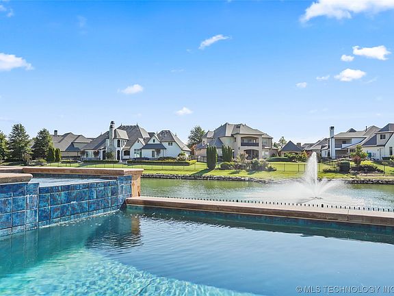 Custom Built Beauty w Tranquil Oasis in Berwick Villas! Bixby Schools, Gated Neighborhood, Pool w Hot Tub overlooking Pond View w Fountain, Outdoor Kitchen, 3 Beds each with Private Bath En-Suite, Primary Suite with Sitting Room overlooking the Pond and Hot Tub, Study, Dining or Extra Living Space, Open Kitchen to Living and Nook, Large Wet Bar Area Up and Extra Large Gaming Room with Shuffleboard, 2.5 Car Garage with sink inside.