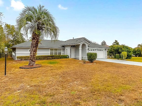 Charming 3 bedroom- 2 bath home offered for the first time by its original owner in Marion Oaks. You won't feel cramped in this 1,651 square ft home that has a covered and lighted front walkway. The Florida room adds an ADDITIONAL 200 square ft of extended living under A/C and is right off the kitchen, a perfect BONUS ROOM with many options of use. A new roof was installed in 2020 and a new A/c was installed in 2007. This original owner's home has a private fenced in backyard and a split bedroom floor plan for added privacy. The kitchen is spacious with a lot of storage and the dining room is just off of the kitchen for convenience. The large primary bedroom has an ensuite bathroom that has a nice size vanity and a low-step walk-in shower. Extra long driveway and large yards are included. Make plans to see this fine home today!