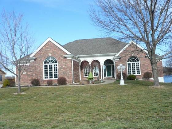 This lakefront 1.5-story home features 4 bedrooms, 3.5 baths, a whirlpool tub, patio, an eat-in kitchen with island, formal dining area and a finished walkout basement. The lower level is perfect for gusts with a full kitchen, eating area, wet bar area, game area, workout room, bedroom and storage space. It also includes an attached 4-car garage. Amenities include the clubhouse, exercise trail, play area, pool, recreational facilities and boat dock.