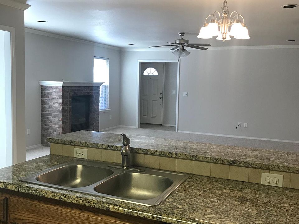 Quiet cul-de-sac with rear entry double garage - washer dryer hookup - gas log fireplace with private patio area - isolated master suite - open floor plan - stainless appliances lawn care is included - tenant responsible for water, electricity and gas.
