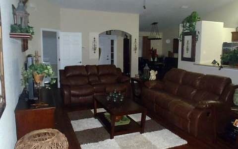 BETTER THAN NEW!!! This Homeowner finished it after purchase with many upgraded choices to make this a beautiful home. This open floor plan features vaulted ceilings, plant shelf and arched openings. Kitchen has wood cabinets, stainless steel appliances, wood vinyl floors throughout main area. Sliding Glass Doors open up to a screened lanai that overlooks a fenced in yard. This home is in perfect shape, come see....
