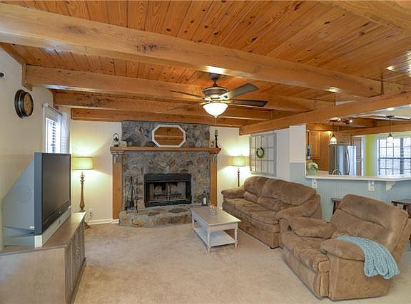 Rustic Chic home with Gatlinburg Views!~Exposed Wood Beam Ceilings~Updated Fixtures & Appliances~Fresh Paint~Many other Updates~Washer & Dryer Remain~Above Ground Pool w/ Decks for Entertaining~Rocking Chair Front Porch~Loads of Storage~Open Floor Plan