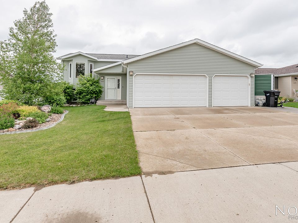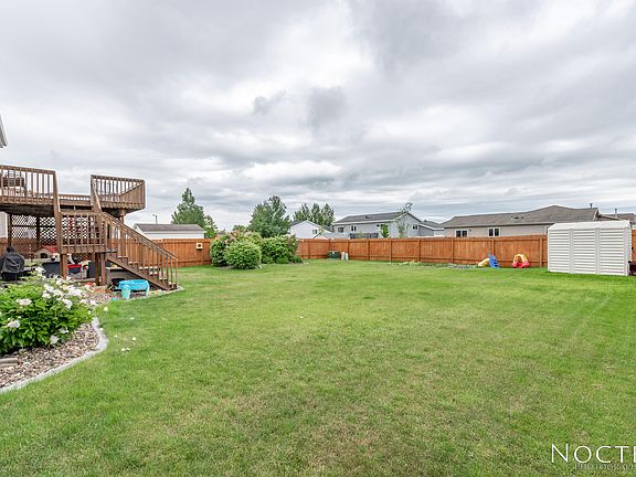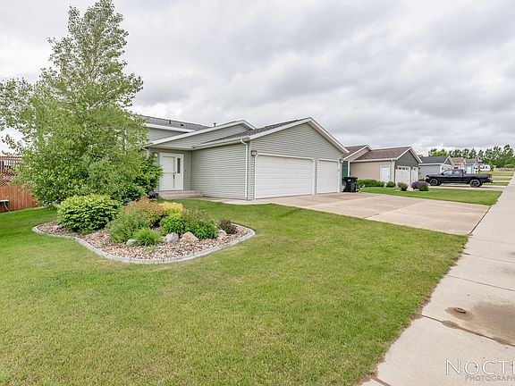 Well maintained home with a large HEATED 3-STALL GARAGE and extra concrete parking pad! Located in NE Bismarck, near Sunrise Elementary School and a new shopping development offering a grocery store, coffee shop, fast food & more! Open concept, 2 bedrooms (master with large walk-in closet) & large full bath on the mail floor, warm-neutral tones, CUSTOM CHERRY CABINETS in the kitchen with snack counter, pantry & gas range, finished WALKOUT LOWER LEVEL with spacious family room, storage, laundry, full bath & 2 additional bedrooms. You'll enjoy the large, incredible yard with curbing around the landscaping, garden spot, established tree & bushes, fenced back yard, storage shed, patio and large deck.