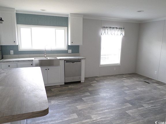 Beautiful new 4 bedroom 2 1/2 bath Fleetwood 28' X 56' double wide manufactured home set up with a 6' X 8' deck on the front and an 8' X 10' deck on the rear in the Creekside leased lot community North Myrtle Beach, SC. The home has an open floor plan, stainless steel appliance package, kitchen island bar, a combination of vinyl and carpet flooring and plenty of cabinets throughout the kitchen and bathrooms. The decks are great for relaxation or entertaining and the community pool is an added bonus. Creekside is only minutes to the Atlantic Ocean as well as intracoastal waterway. This home is a must see today.