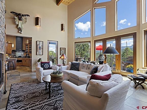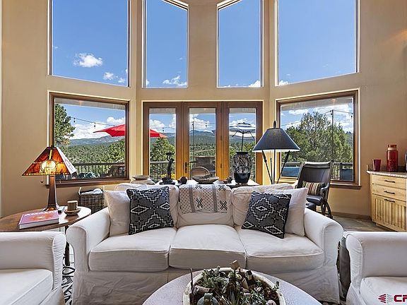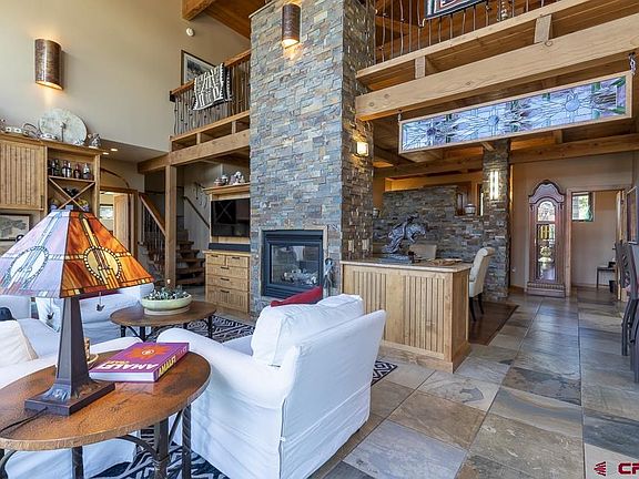 Custom built 2 bedroom 3 bath home with a large loft and a 3-car garage located between Durango and Mancos. Theproperty is nestled on 23 acres that border public lands and has magnificent views of the La Plata Mountains! The subdivision does not have an HOA. There is a fenced in back yardwith a greenhouse, a chicken condo or a dog run, and two custom built storage units. The oversized 879 SqFt back deck is the perfect place to relax with your morning coffee, to host cookouts, or enjoy the incredible mountain views and dark sky for stargazing. The property has a long circular paved driveway. The main level of this spectacular home has an open living/dining/kitchen design with a wall of windows and French doors that brings the outdoors in. There is a soaring vaulted tongue and groove ceiling and a cozy double-sided gas fireplace between the living room and the dining area. The gourmet kitchen boasts exquisite custom built Alder cabinetry, granite countertops, slate backsplash, two large center islands, a double oven and warming drawer, a range with a custom built bronzed hood, and 2 sinks. Additionally, there is a walk-in pantry, a beverage cooler,an ice maker,and a wet bar. The main level has a primary bedroom with its own fireplace and a door that leads to the backdeck, a coffee bar with a sink,a large walk-in closet, and a sumptuous bathroom with a double shower, a soaking tub, and a separate water closet. There is another good size bedroom with its own ensuite bath with a private door to the back deck. The main level features a large laundry room and a half bath. The upper floor has a grand loft with itsown privatebalcony. The loft can be used as a game room, TV room, office, or third bedroom. The home has triple pane windows, a brand new solar panelsystem, tankless water heater, a surround sound system, central AC, andan abundance of storage space throughout. The back deck has many different sitting areas, a gas fire pit,and the BBQ grill is plumbed for gas. This home truly is the perfect balance of all the modern conveniences while retaining its rustic mountain style.