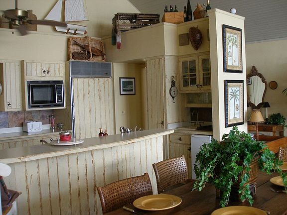 Fantastic Views of Duck Creek & the main lake from nearly every room in the house, the large deck and yard. ONE level living in this lovely home which features wood, carpet and stained concrete, charming kitchen, fireplace in living and en-suite bathrooms for each bedroom. Situated on a waterfront lot in The Coves, a gated golf community with pool, clubhouse and so much more. A MUST SEE!