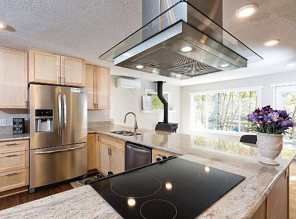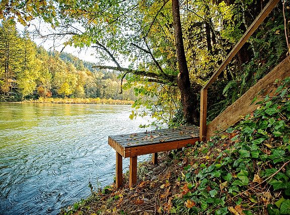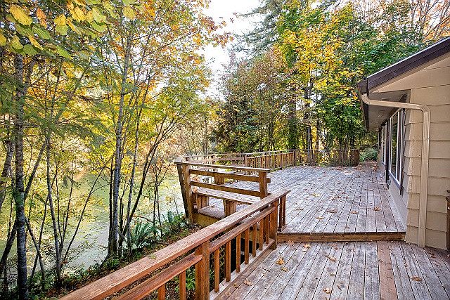 Shows like new, No flood insurance required. Completely remodeled in 2017. New plumbing, electrical, roof, windows, doors, vinyl plank flooring, master suite with walk in shower, double sinks & double closets, maple kitchen cabinets, granite counter tops, smudge proof stainless appliances, pantry, washer and dryer, exterior and interior paint and ductless heating system. Spacious deck for entertaining and to watch the wildlife play. Just a few steps down to the lake/river to fish, boat, raft, or paddle board. Living on the lake is fun for kids of all ages and is crystal clear because the McKenzie River flows through it year round. RV parking, boat house, two detached garages. A real keeper~ You could add a floating dock on the lake without a permit and install a hot tub on the deck outside of the master suite.