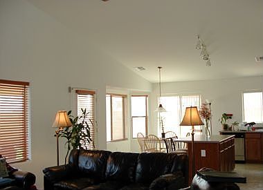 Fabulous barely lived in Hacienda home with wide open floor plan. Bay windows in kitchen and master bedroom, 2" wood blinds, custom ceiling fans, wash basin in laundry room and much more! Great over sized pool!!