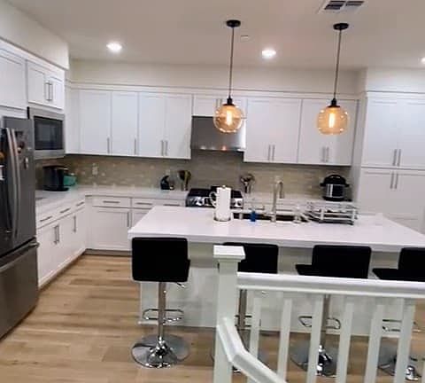 Stunning north-facing luxurious corner townhome-style condo with 3 beds/3 baths over two stories. Features a gourmet kitchen with GE stainless steel appliances, quartz countertops, and a large island. Hardwood floors throughout. Includes gas washer/dryer, tankless water heater, Water softener and drinking water filtration system, EV charging, owned solar, 2-car garage (side by side) with WiFi access, smart temperature control, and Ring Doorbell. All 3 bedrooms equipped with closet organizer system. Community amenities includes clubhouse, gym, pool, play areas, and a park. Move-in ready, walkable to BART, Lila Bringhurst school, retail (Walmart, Costco, Target, Cinemark), and with easy freeway access (680/880). Renter pays electricity, Water and garbage. Renter's insurance required. No smoking. No smoking allowed.
