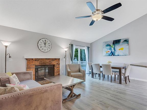 Search No More! You have found the perfect home! Updated, clean, and move in ready! This home has it all! Open floorplan with vaulted ceiling, beautiful grey laminate wood flooring and wood burning fireplace. Gorgeous Kitchen with stylish grey cabinets and soft close drawers, tiled back splash, stainless appliances, and lovely granite counter tops. Newer Light fixtures/ceiling fans in all bedrooms. Both bathrooms renovated with ceramic tile surround. Master suite has a nice walk in closet and master bathroom has a large walk in shower with glass shower door. Fresh and clean Grey toned carpet in all bedrooms and stairs to basement. Basement is awaiting your finishing touches. The basement is a walk out and has plenty of space to finish for family room/rec area and storage. 3 year new Roof, Patio, HVAC system (2018) . Beautiful lot offers a lovely large deck and lush green space.
