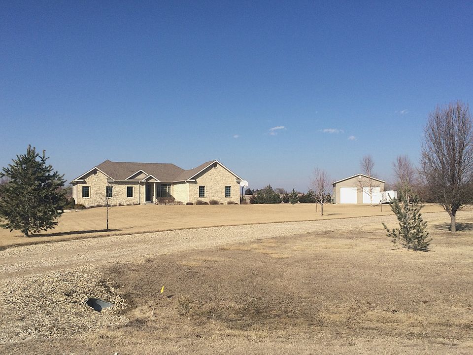 This beautiful property is located just minutes from Manhattan. There are 2.9 acres of manicured grounds with an in ground sprinkler system and several trees. The home was built in 2005 and boasts 9 foot tall ceilings throughout the main floor, cathedral vault in the living room, a spacious open floor plan with 5 bedrooms, 3 bathrooms, 2 car attached garage and full finished walk out basement. Main floor master has private bath with whirlpool tub and walk-in closet. Kitchen has alder wood cabinets and breakfast nook. A large out building/work shop was constructed in 2012. Energy efficient LED lighting. Awesome family room. 6th non-conforming bedroom/office.