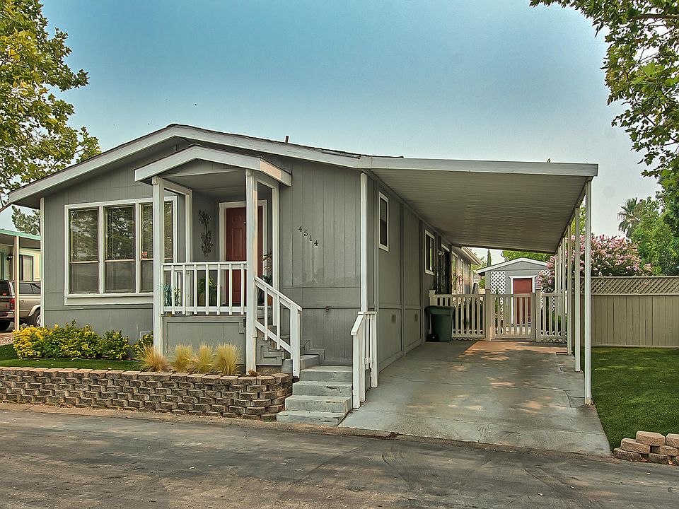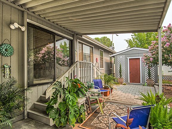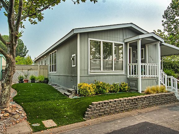 Elegant lifestyle in this beautiful mobile home in a 55+ Senior Park. 2 bed 2 bath with 1470 sf on nice lot. Huge Formal Living room & family room. Kitchen with Stainless steel appliances. Awesome landscaping with front having artificial turf that looks like the real thing. Fenced backyard with wood storage shed for extra storage and still plenty of room for a garden.