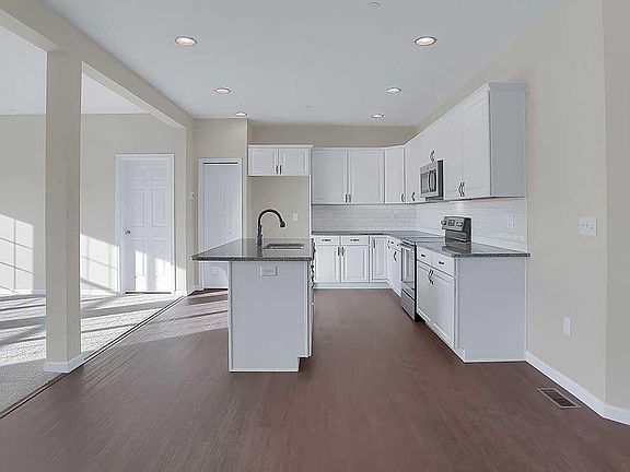 This 2-story townhome with welcoming front porch includes a 2-car garage.. Stylish vinyl plank flooring in the foyer extends to the Kitchen and Dining Area. The Kitchen features stainless steel appliances, granite countertops with tile backsplash, and attractive cabinetry. Off of the Kitchen and Dining Area is the spacious Great Room with sliding glass door to the deck. The 2nd floor boasts 3 full bedrooms, 2 bathrooms, a Rec Room, and a convenient laundry room. The Owner's Suite with large closet includes a private bathroom with double bowl vanity.