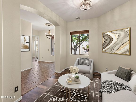 Back on the market-Buyer Could Not Fulfill Obligations! Seize this second chance to own a beautifully updated 4-bedroom, 3-bathroom home in the desirable Granville community. At an expansive 2,560 sq ft, this home's standout feature is its assumable 2.875% interest rate, offering incredible savings. A clean home inspection from the prior buyer provides extra peace of mind. White appliances UPDATE TO SS APPLIANCES. PHOTO'S REFLECT BEFORE & AFTER INSTALLATION.Step inside to discover a bright, open split floor plan enhanced with new LVP and tile flooring. The gourmet kitchen is the heart of the home, featuring elegant quartz countertops, a large island, and stainless steel appliances arriving soon. Work from home with ease in the private office with French doors, and host memorable dinners in the formal dining space. The luxurious master suite serves as a perfect retreat, complete with a garden tub, large shower, walk-in closet, and new plantation shutters.This home includes a new roof (2023) with a transferable warranty and a spacious 3-car garage perfect for car enthusiasts or extra storage. The large backyard is ideal for entertaining on cool summer evenings. As a Granville resident, you'll enjoy fantastic amenities, including clubhouses, pools, and sports courts, all while being just 1.5 miles from Prescott Valley's best shopping, dining, and entertainment. Don't miss this exceptional offer!
