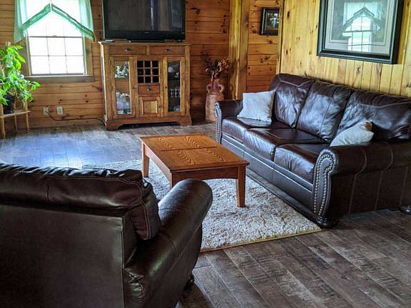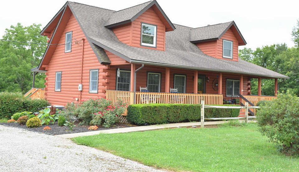 Conveniently located on a private, peaceful fully fenced with green clover pastures & Beautiful True Northeastern Log Cabin home with acreage for your livestock. Wow move in ready for YOU, Home boost of 4 Bedrooms 3 full baths all updates a walkout with garage in lower level. Front & Back decks to watch the sunrise & the sun set overlooking farmland and pond for fishing. Bonus separate 15x40 detached garage/workshop with concrete floor & electric detached. Bonus 40x60 with 4 stalls size 12x12 and 2 hay lofts area with workshop in barn. Back deck has a bridge to turn out dogs to a fully fenced in area for their playtime. Bring your livestock this farm is ready to accommodate. Call for your private safe showing today!